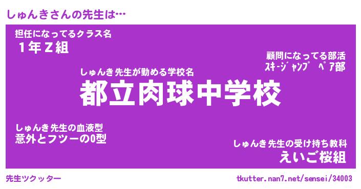 | 意味不明あだ名 | 『ペロリンしゅんき』『永久保存しゅんき』 |