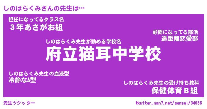 | ツイッター | しのはらくみさんのツイッターID『namakemono_man』 |