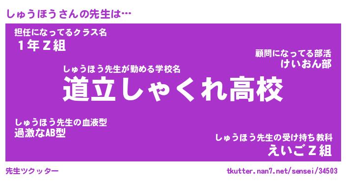| ヒーロー風カッコイイあだ名 | 『スーパーシュウホウ』『暗黒騎士シュ』 |