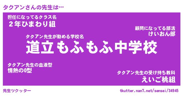 | 意味不明あだ名 | 『ペロリンタクアン』『永久保存タクアン』 |