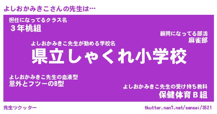 | ヘコむあだ名 | 『よしっふぃ~』『つくし』『よしお』 |