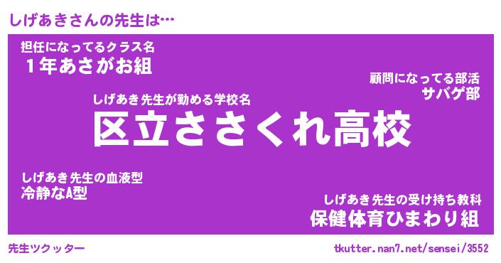 | 意味不明あだ名 | 『ペロリンしげあき』『永久保存しげあき』 |