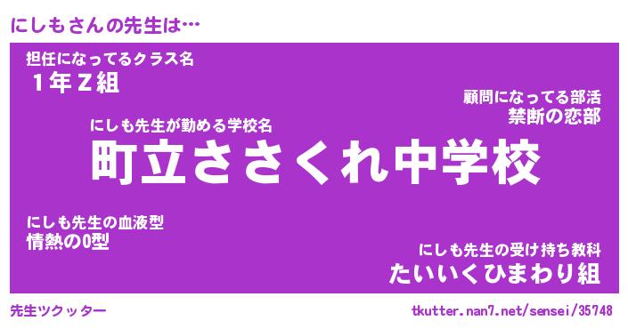 | ファンタジー風あだ名 | 『ニシフェル』『エターナルニシモー』 |