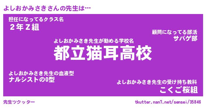 | 男性向けラノベタイトル風あだ名 | 『よしおかみさきの憂鬱』 |