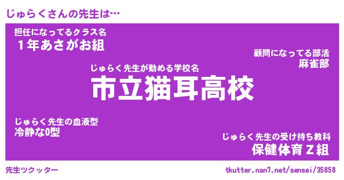 | 意味不明あだ名 | 『ペロリンじゅらく』『永久保存じゅらく』 |