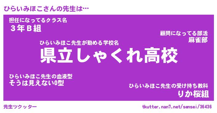 | ヒーロー風カッコイイあだ名 | 『スーパーヒライミホコ』『天弓騎士ヒラ』 |