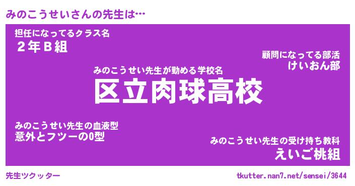 | 肩書あだ名 | 『みのこうせいCEO』『みのこうせい担任』 |