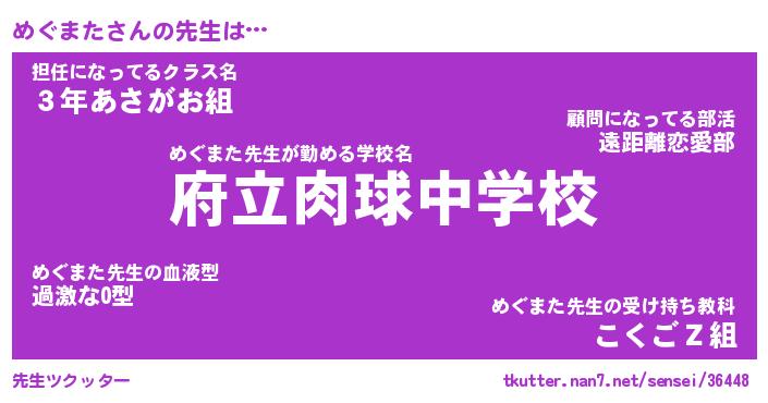 | 意味不明あだ名 | 『ペロリンめぐまた』『永久保存めぐまた』 |
