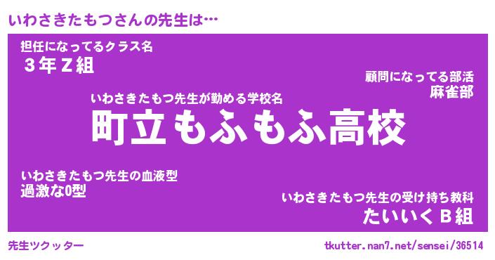 | 意味不明あだ名 | 『ペロリンいわさきたもつ』 |