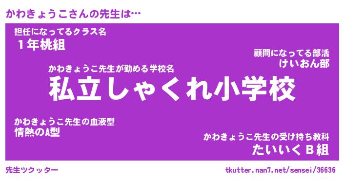 | 伝説のあだ名 | 『伝説のスナイパーかわきょうこ』 |