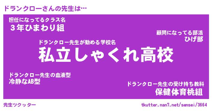 | 男性向けラノベタイトル風あだ名 | 『ドランクローの憂鬱』 |