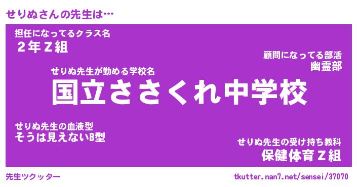 | ヘコむあだ名 | 『せりもー』『なまこ酢』『せりを』 |