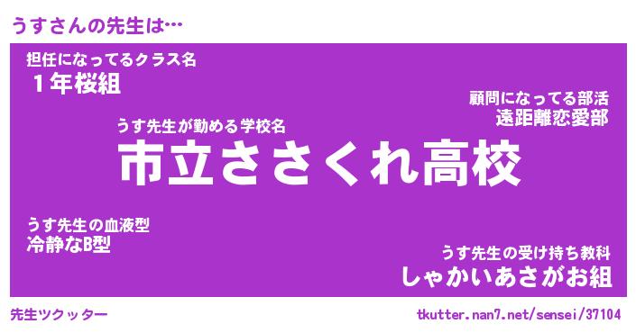 | ポケモン風あだ名 | 『ウスチュウ』『ウスダネ』『ヒウス』 |