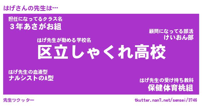 | ファンタジー風あだ名 | 『ハゲフェル』『エターナルハゲー』 |