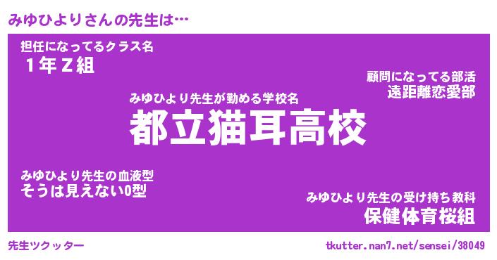 | ヘコむあだ名 | 『みゆにー』『牛乳』『みゆを』 |