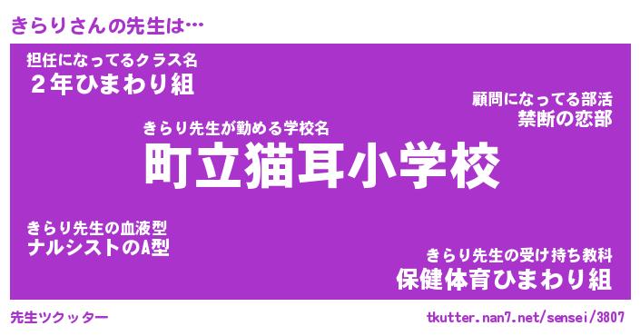 | ヘコむあだ名 | 『きらにー』『牛乳』『きら太郎』 |