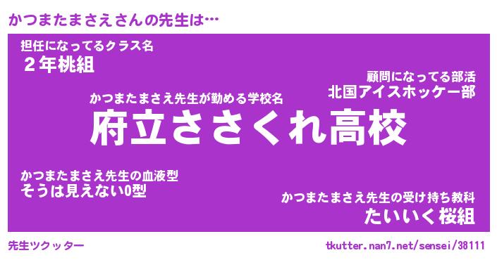 | 恥ずかしいあだ名 | 『プリティーかつまたまさえ』『かつちん』 |