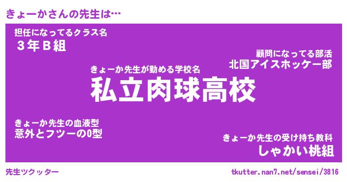 | ヒーロー風カッコイイあだ名 | 『スーパーキョーカ』『幻影騎士キョ』 |