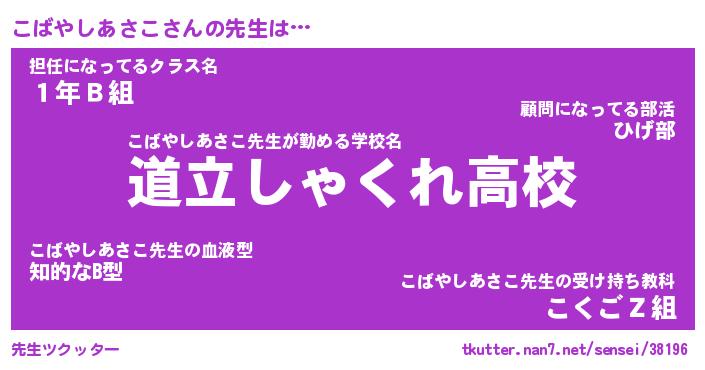 | 伝説のあだ名 | 『不死鳥のスナイパーこばやしあさこ』 |