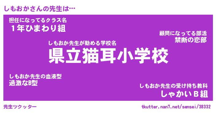 | 男性向けラノベタイトル風あだ名 | 『しもおかの憂鬱』 |