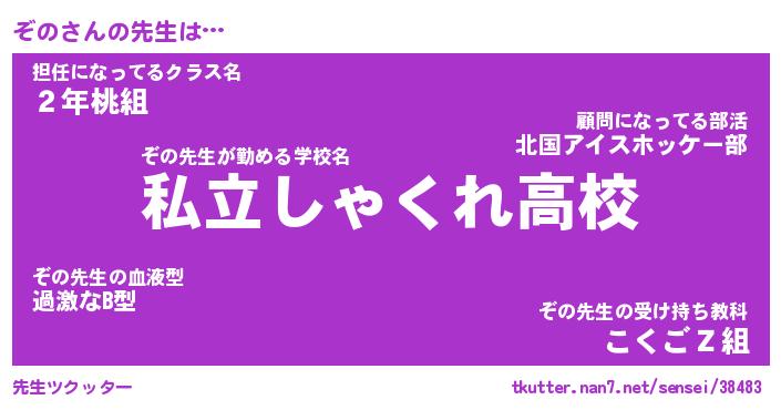 | 伝説のあだ名 | 『伝説のスナイパーぞの』 |