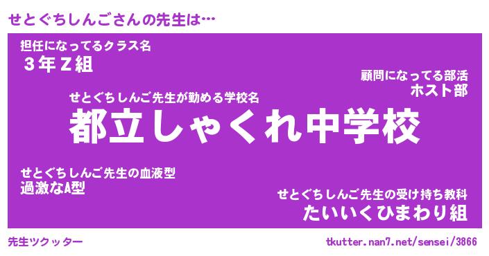 | 伝説のあだ名 | 『不死鳥のスナイパーせとぐちしんご』 |