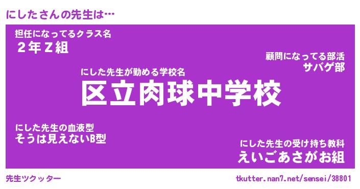 | ポケモン風あだ名 | 『ニシチュウ』『ニシタダネ』 |