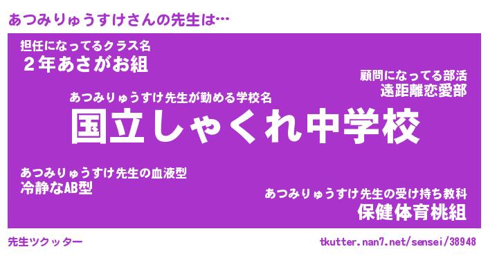 | 伝説のあだ名 | 『伝説のスナイパーあつみりゅうすけ』 |