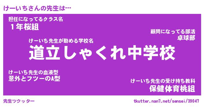 | 意味不明あだ名 | 『ペロリンけーいち』『永久保存けーいち』 |