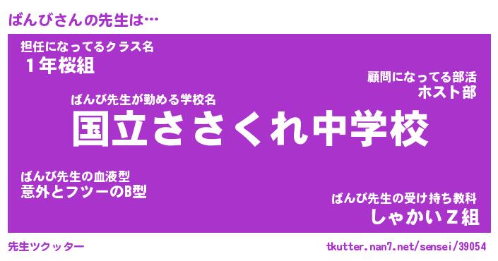 | ポケモン風あだ名 | 『バンチュウ』『バンビダネ』 |