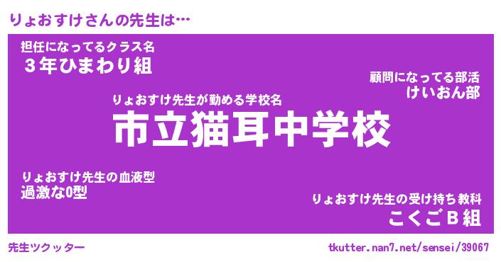| ファンタジー風あだ名 | 『リョフェル』『エターナルリョオスケー』 |