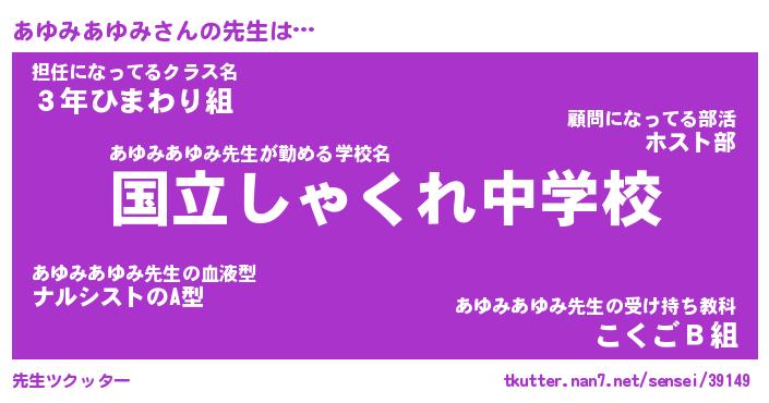 | ヒーロー風カッコイイあだ名 | 『スーパーアユミアユミ』『黄金騎士アユ』 |