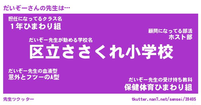 | 意味不明あだ名 | 『ペロリンだいぞー』『永久保存だいぞー』 |