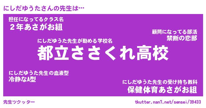 | ポケモン風あだ名 | 『ニシチュウ』『ニシダダネ』 |