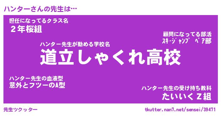 | 意味不明あだ名 | 『ペロリンハンター』『永久保存ハンター』 |