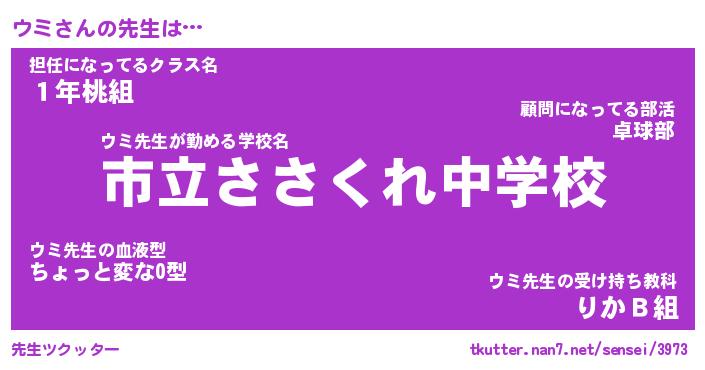 | ヘコむあだ名 | 『ウミもー』『つくし』『ウミを』 |