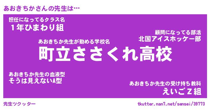 | ファンタジー風あだ名 | 『アオフェル』『エターナルアオキチカー』 |