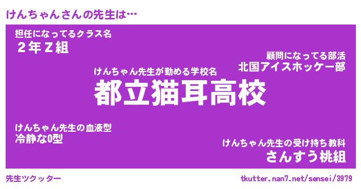| ファンタジー風あだ名 | 『ケンフェル』『エターナルケンチャンー』 |