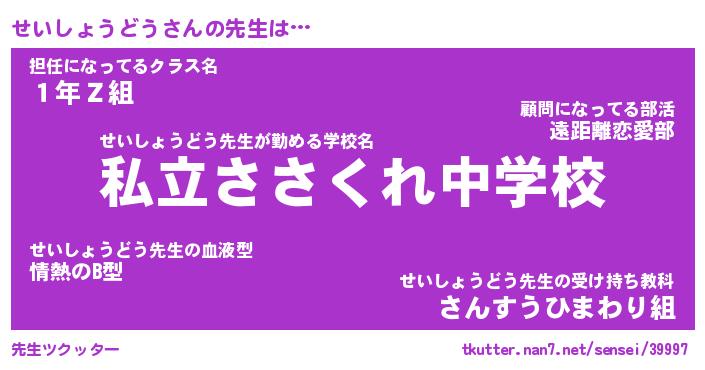 | 伝説のあだ名 | 『伝説のスナイパーせいしょうどう』 |