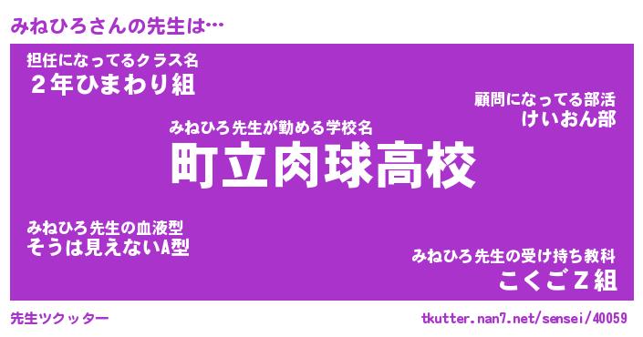 | 意味不明あだ名 | 『ペロリンみねひろ』『永久保存みねひろ』 |