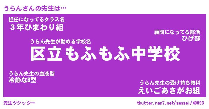 | ヒーロー風カッコイイあだ名 | 『スーパーウラン』『ウルトラうらんマン』 |