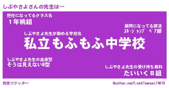 | ヘコむあだ名 | 『しぶにゅー』『つくし』『しぶを』 |