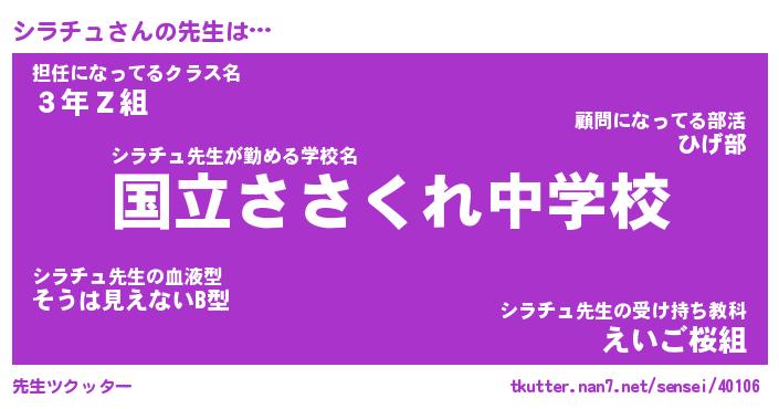 | 意味不明あだ名 | 『ペロリンシラチュ』『永久保存シラチュ』 |