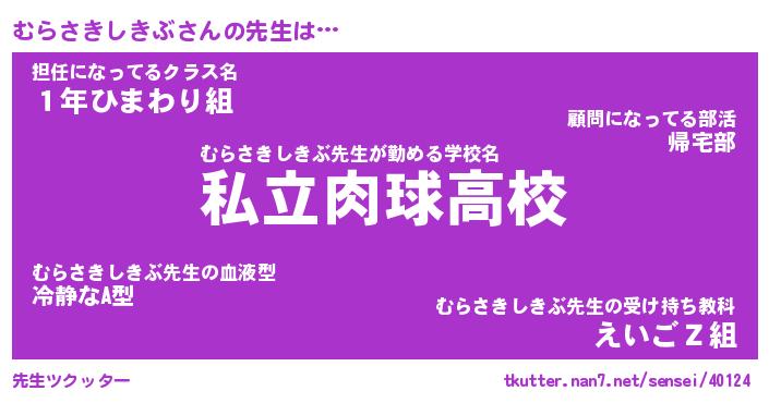 | 恥ずかしいあだ名 | 『プリティーむらさきしきぶ』『むらちん』 |