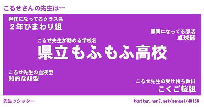 | ヘコむあだ名 | 『こるにゅー』『なまこ酢』 |