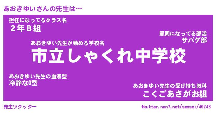 | ファンタジー風あだ名 | 『アオフェル』『エターナルアオキユイー』 |