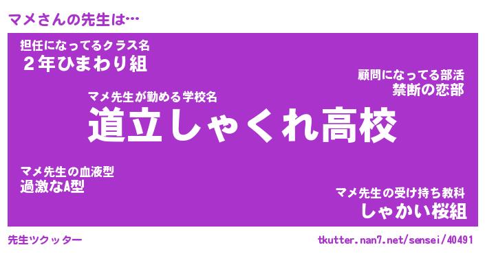 | 意味不明あだ名 | 『ペロリンマメ』『マメフォーエバー』 |