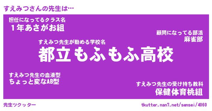 | 意味不明あだ名 | 『ペロリンすえみつ』『永久保存すえみつ』 |
