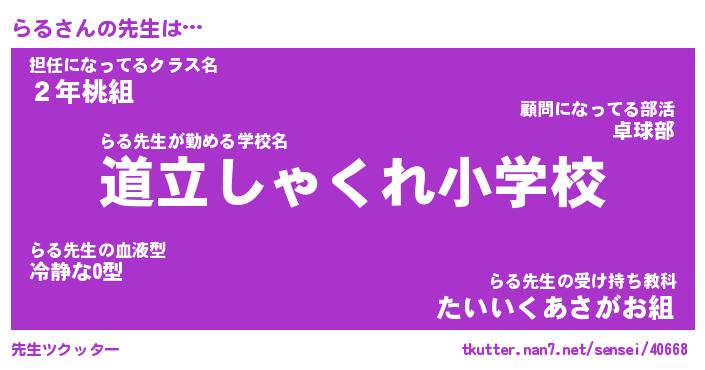 | ヘコむあだ名 | 『らるっふぃ~』『つくし』 |
