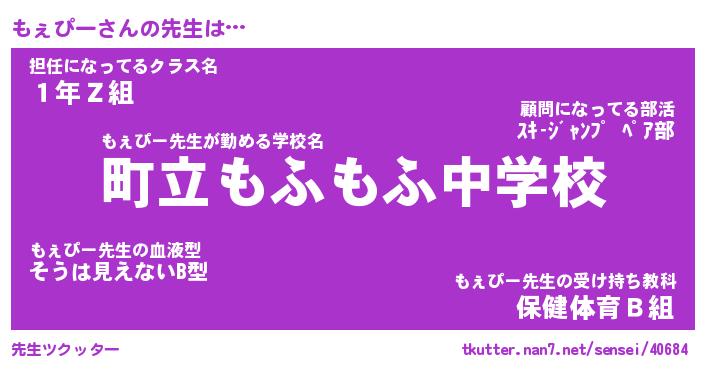 | ファンタジー風あだ名 | 『モェフェル』『エターナルモェピーー』 |